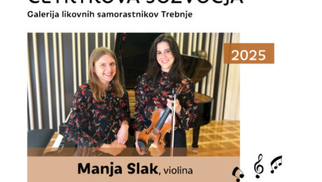Cikel koncertov Četrtkova sozvočja prinaša v Galerijo likovnih samorastnikov Trebnje vrhunske glasbene večere v družbi priznanih slovenskih umetnikov, ki blestijo tako doma kot v tujini. Serija koncertov je posvečena vrhunski interpretaciji in izjemnim glasbenim doživetjem, ki presegajo meje klasične glasbe ter vabijo k poglobljenemu poslušanju in estetskemu užitku. Drugi koncert cikla bo 24. aprila 2025