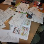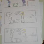 Udeleženci so se najprej seznanili s stripi različnih avtorjev, s katerimi so spoznali različne prostope k ustvarjanju stripa. Nato so se lotili risanja čustev; na papirju se je tako znašla obilica veselih, jeznih, presenečenih in zamišljenih obrazov. Po odmoru pa so pričeli z ustvarjanjem prvega pravega stripa, ki je bil sestavljen iz treh sličic.