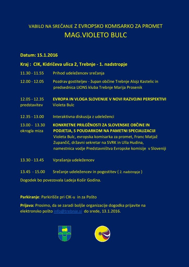 Zaradi lažje organizacije nam svojo udeležbo sporočite na elektronski naslov info@trebnje.si, najkasneje do srede, 13. 1. 2015.