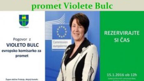 V petek, 15. januarja 2016, ob 12. uri vabljeni na pogovor z evropsko komisarko za promet Violeto Bulc. Kraj : Center za izobraževanje in kulturo Trebnje, Kidričeva ulica 2, Trebnje – 1. nadstropje Na okrogli mizi bosta sodelovala še: – Franc Matjaž Zupančič, državni sekretar v Službi Vlade RS za razvoj in evropsko kohezijsko politiko – Ulla