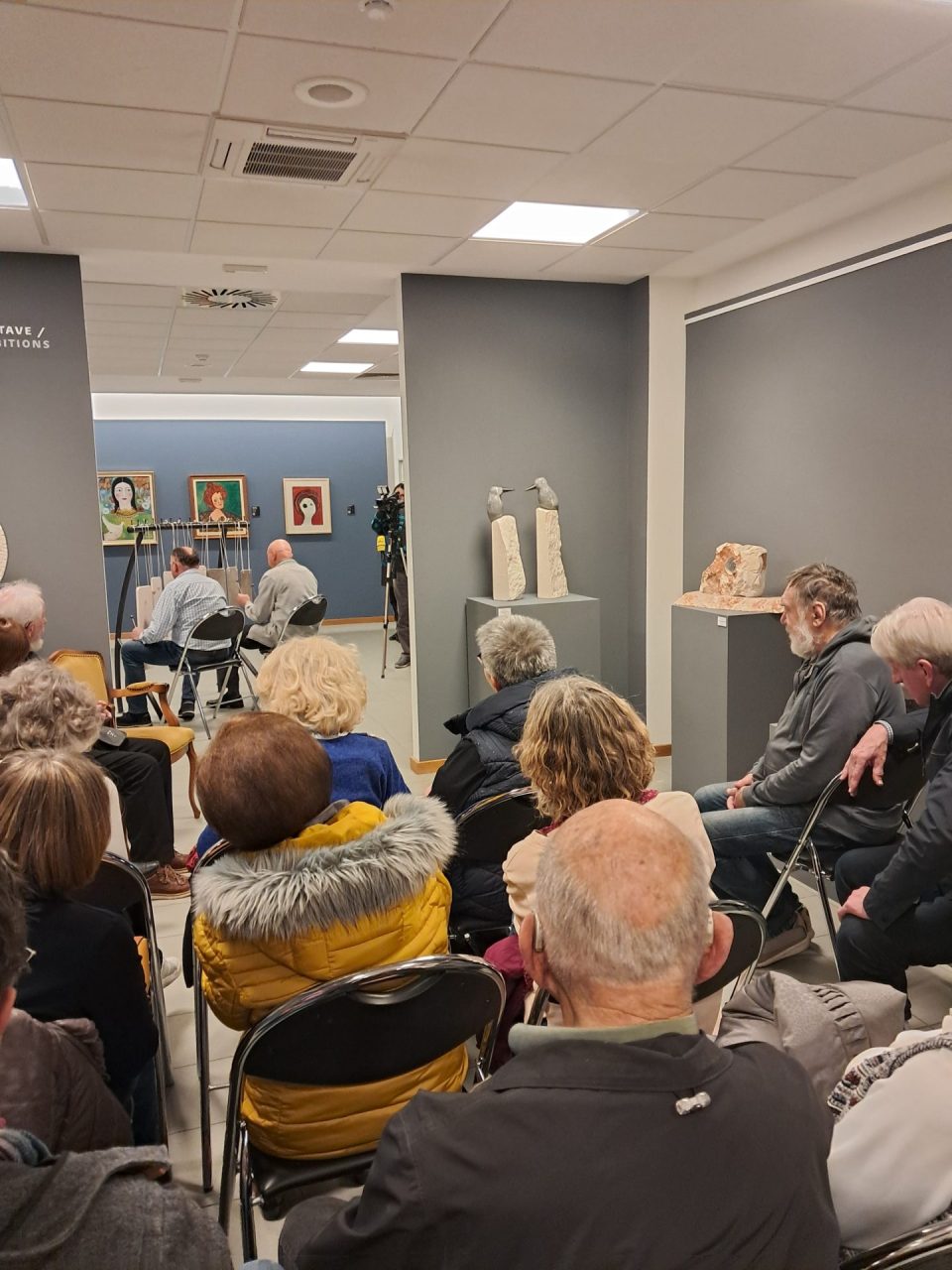 Na začetku je zbrane nagovorila avtorica razstave Damjana Šalehar. O ustvarjalnem opusu avtorjev je spregovorila Joža Miklič, umetnostni zgodovinar Jožef Matijevič pa je osvetlil pomen praznika sv. Jožefa, ki ga obeležujemo 19. marca. Poseben pečat dogodku je dal zvočni nastop na t. i. »pojoče kamne«, unikatno glasbilo, ki ga je ustvaril Rudi Škof. Zvoke sta iz njega izvabljala Drago Šulc in Milan Merlin. Za glasbene vložke je poskrbela solo in zborovska pevka Ksenija Hren, za povezovanje pa Ana Modic.