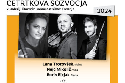 Nestrpno že pričakujemo tretjega iz cikla koncertov Četrtkova sozvočja, ki jih organiziramo v sodelovanju z Glasbeno šolo Trebnje. Pridružite se nam v četrtek, 30. maja 2024, ob 18.00, ko bomo gostili Lano Trotovšek, violina, Nejca Mikoliča, viola in Borisa Bizjaka, flavta. Program bo povezovala Kristina Gregorčič.