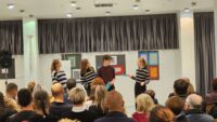 V dvorani bomo otvorili tudi razstavo otroške risbe ob razstavi Začrtano, ki je na ogled v Galeriji likovnih samorastnikov Trebnje. Mladi ustvarjalci so razmišljali, kaj je risba, kako jo ustvarimo in pustili domišljiji prosto pot, da so nastale inovativne risbe otrok vseh starosti. Na razstavi so razstavljena dela otrok iz osmih osnovnih šol. Razstava bo na ogled do 31. decembra 2023.